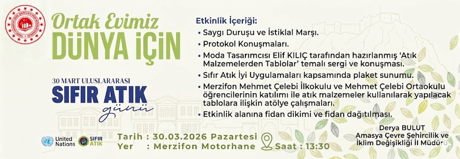 Mart ayı boyunca gerçekleştirilen ve gerçekleştirilmekte olan paylaşımlar ve etkinliklerle sürdürülebilir yaşam kültürünün yaygınlaştırılması, atık oluşumunun azaltılması ve kaynakların etkin kullanımı konusunda kamuoyunun bilinçlendirilmesi sağlanmaktadır. Bu kapsamda 30 Mart Uluslararası Sıfır Atık Günü, 30 Mart 2026 Pazartesi günü İl Müdürlüğümüz koordinasyonunda “Uluslararası Sıfır Atık Ayı” teması ile çeşitli etkinliklerle kutlanacaktır.