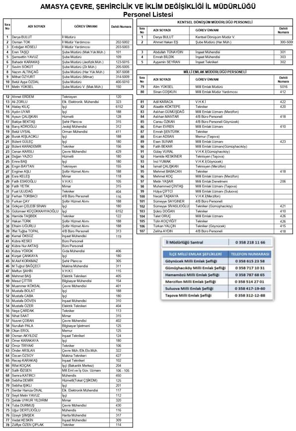 İl Müdürlüğümüz Personelleri Dâhili Telefonları
